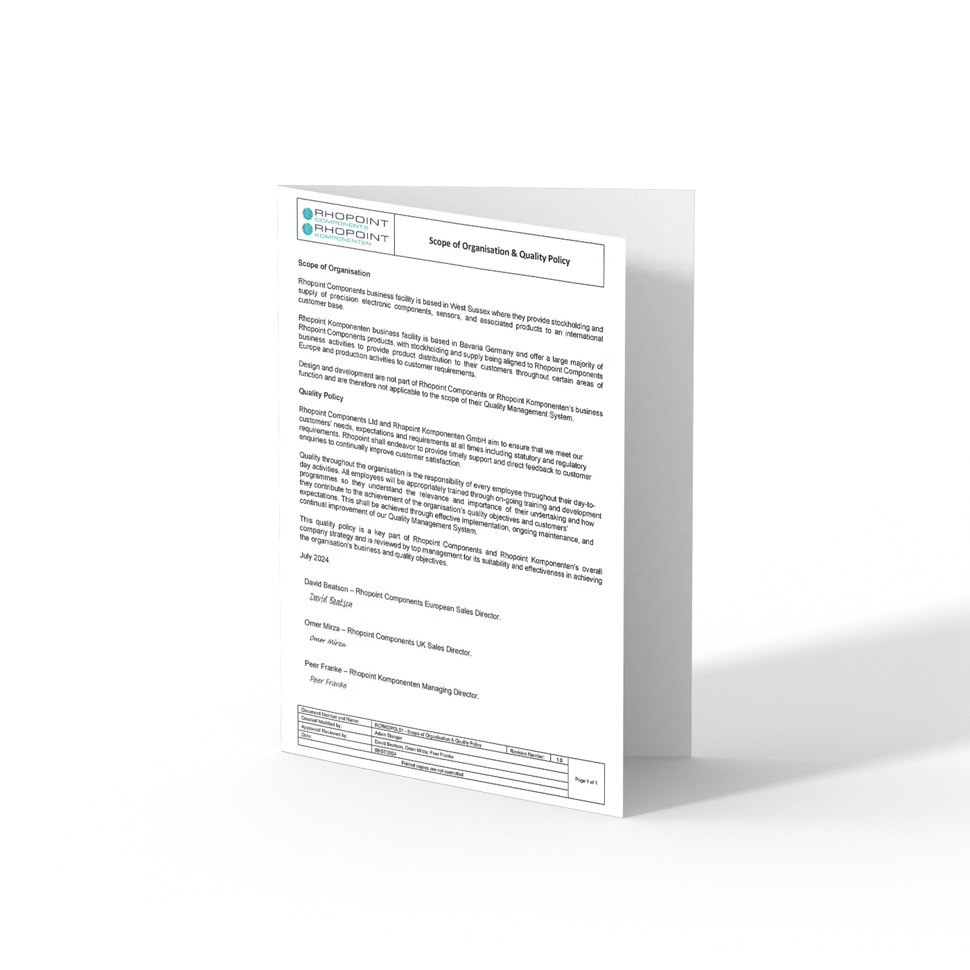 This document outlines Rhopoint Components scope of services and quality policy, detailing our commitment to delivering high standards and compliance in procurement and distribution services.
