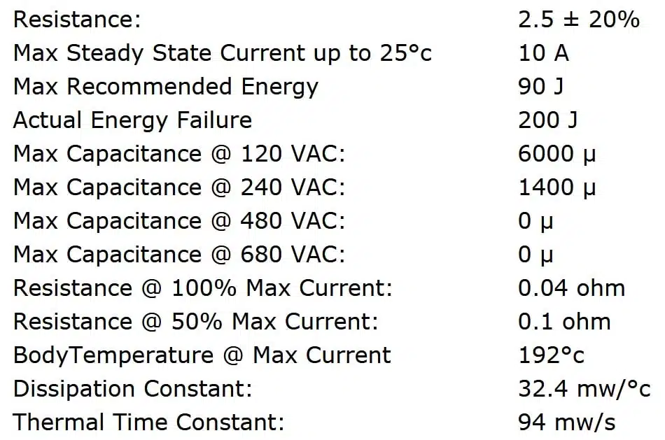 | Resistance at +25ยฐC | 2.5ฮฉ |